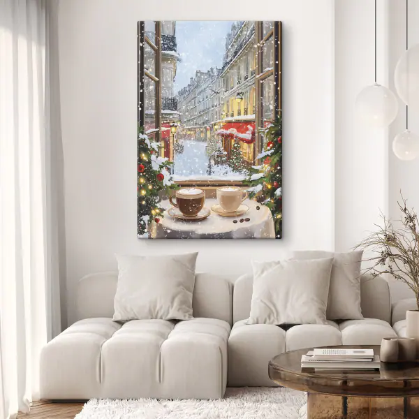 98.34 zł59.00 złObraz Okno z dwiema filiżankami kawy i drzewami przed ulicą