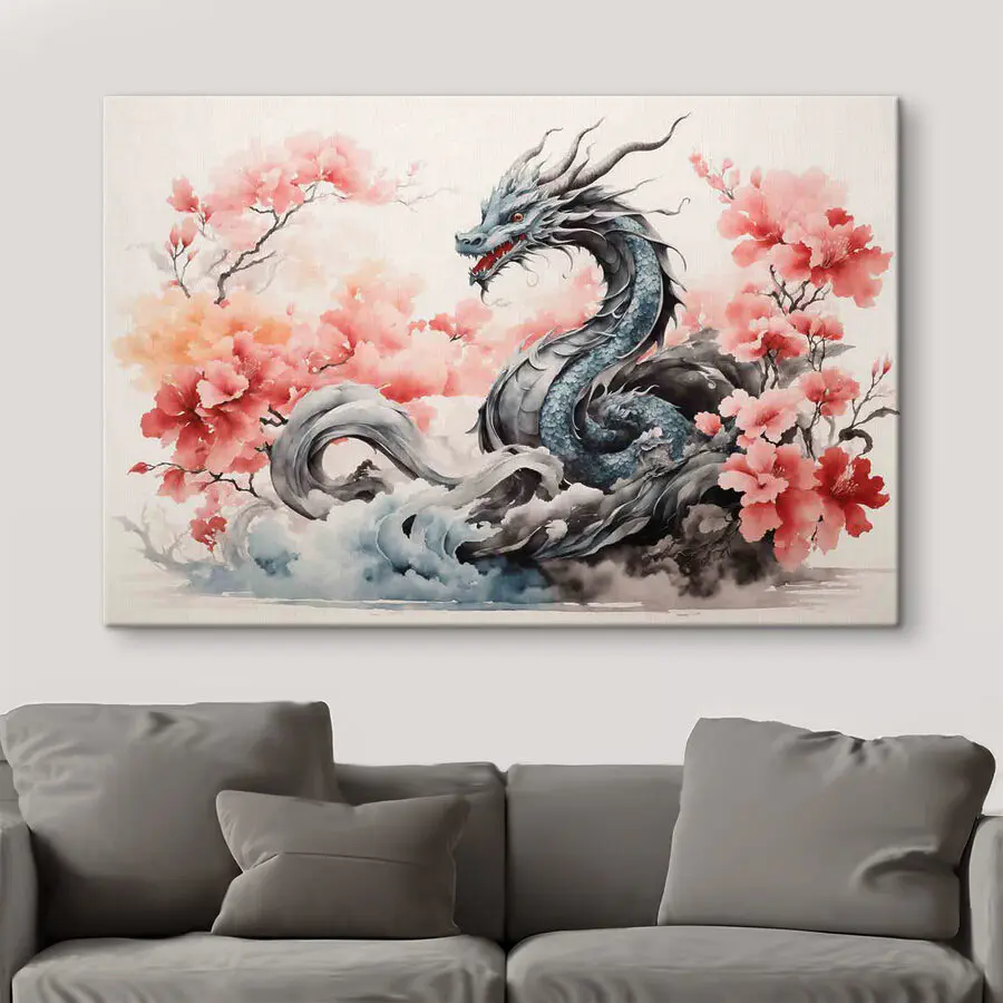Obraz Smok z różowymi kwiatami