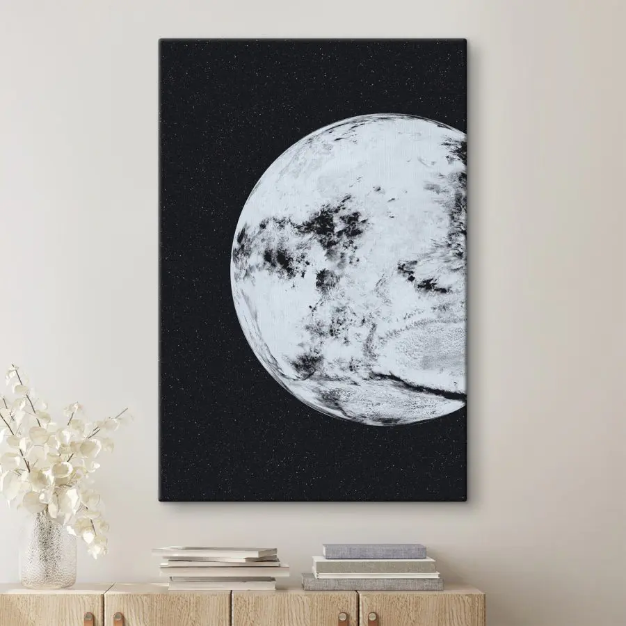 Marzyłeś kiedyś o dryfowaniu w kosmosie? Ten wydruk na płótnie jest dla Ciebie. "Planet in Space with Stars" łączy w sobie tajemnicę wszechświata z eleganckim czarno-białym klimatem. Idealnie nadaje się do przekształcenia nudnej ściany w portal do gwiazd - wprost w Twoim salonie. Wyobraź sobie, że popijasz poranną kawę, spoglądasz na jego oszałamiającą prostotę i czujesz się trochę jak astronauta w filmie science-fiction. A wszystko to bez opuszczania wygodnego fotela. Odrobina klasy dla każdej przestrzeni. Dosłownie!