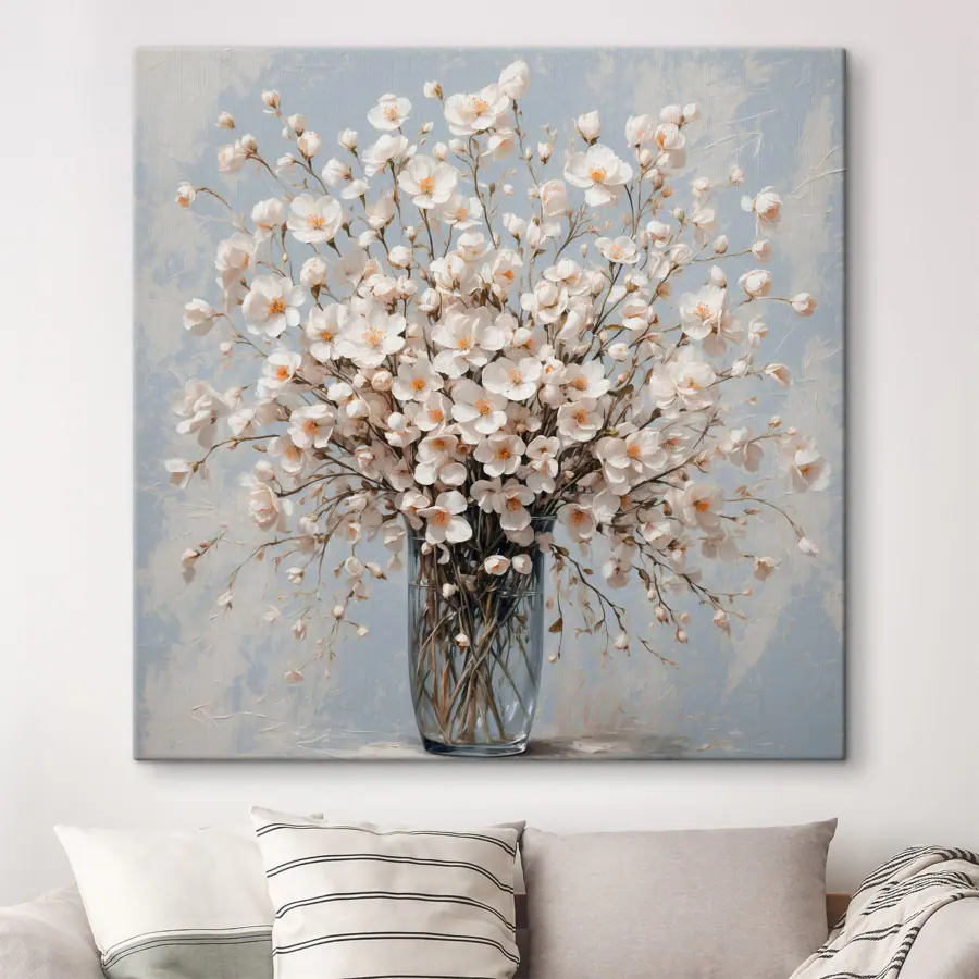 Rozjaśnij każde pomieszczenie dzięki temu czarującemu obrazowi na płótnie "Wazon z białymi kwiatami". To jak przeniesienie odrobiny natury do wnętrza bez obawy o więdnące płatki! Wyobraź sobie, że przechodzisz obok tego piękna i łapiesz powiew świeżych kwiatów - no dobrze, może nie pachnie jak kwiaty, ale wizualna rozkosz jest równie orzeźwiająca. Idealny do przytulnego kącika do czytania lub nad pustym miejscem, w którym roślina po prostu by się nie rozwijała, ten element oferuje uspokajającą atmosferę, która może nawet sprawić, że gorączkowy dzień będzie nieco spokojniejszy. Delikatne kolory płynnie łączą się ze sobą, dzięki czemu jest to absolutne marzenie dla każdego stylu wystroju. W końcu kto nie chciałby być otoczony bukietem, który nigdy nie blaknie? Ponadto, jest to świetny początek rozmowy - "Och, te kwiaty? Są wieczne, tak jak moja miłość do kawy!".