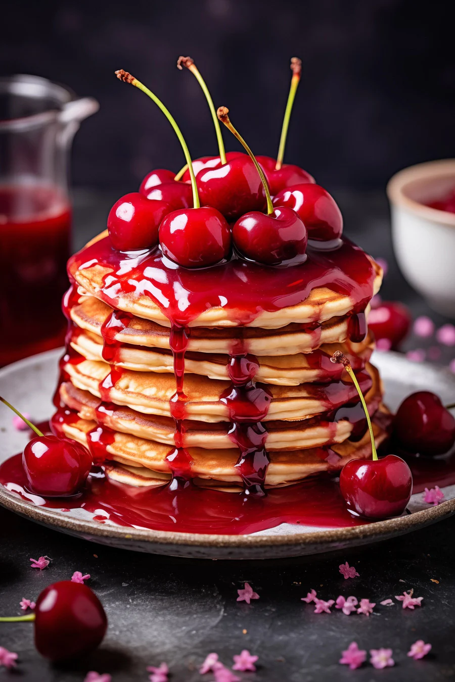 Obraz Stos naleśników z syropem wiśniowym na wierzchu